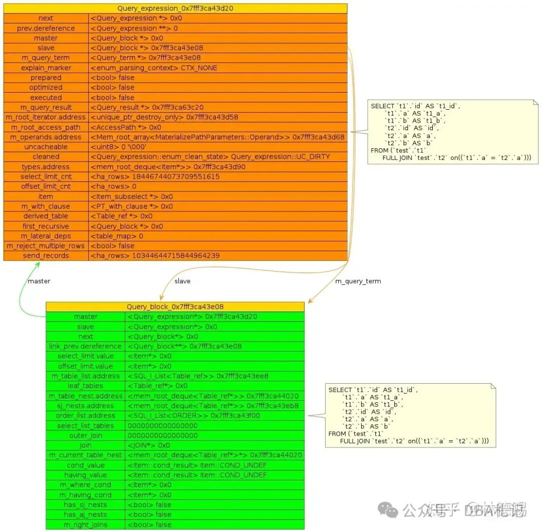 MySQL 对一条 SQL 进行词法、语法解析后,会先按照语法层次结构生成 Query_expression、Query_block、Query_term 组成的结构。