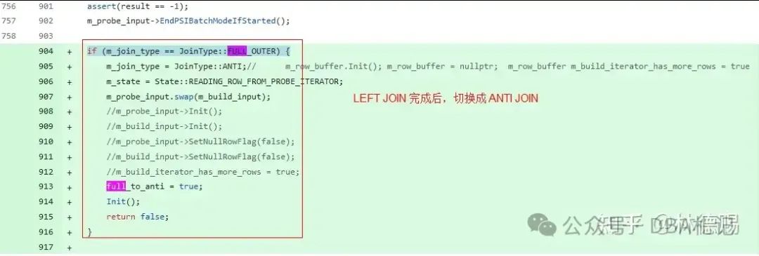 函数中添加对 LEFT JOIN 的处理完成后,进行 full_to_anti 的切换,进入 ANTI JOIN 流程: