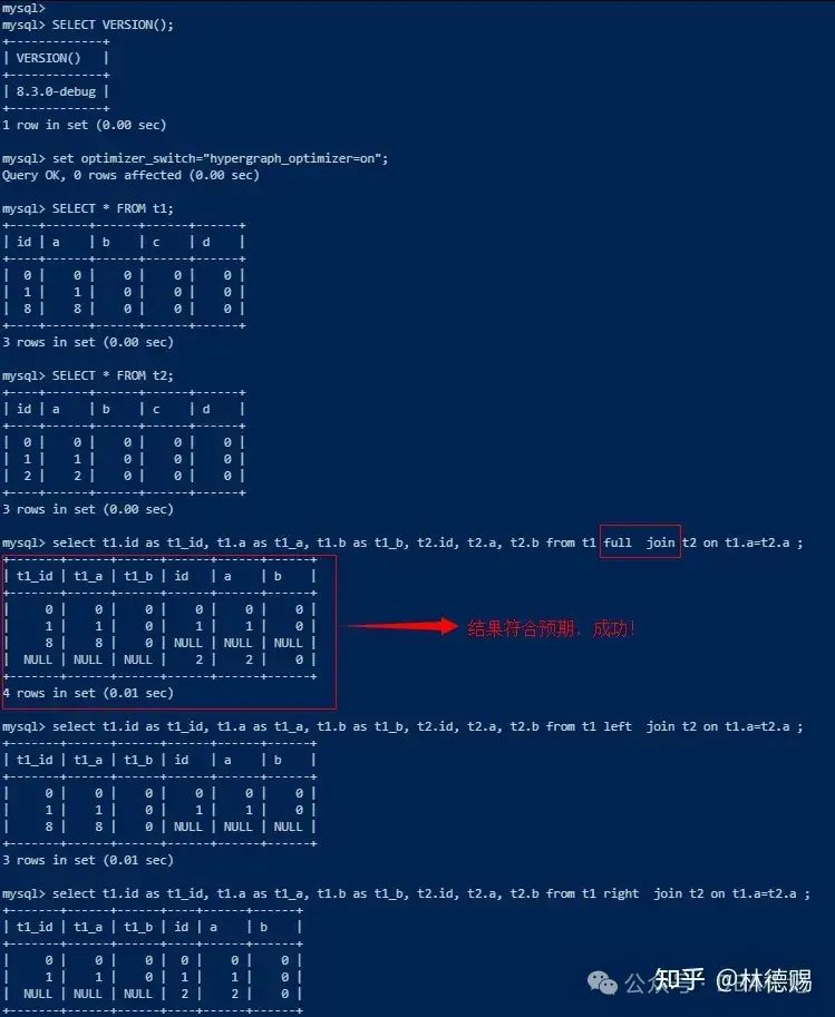 MySQL 8.0 版本开始对 hypergraph_optimizer 支持,但默认是关闭的。在开源界中,我认为它目前是 join order 算法中最领先的,它是其它开源数据库优化器的未来。所以在这里,我选择了在 hypergraph_optimizer 中打造 FULL JOIN 新功能,需要执行 SQL 之前设置 set optimizer_switch="hypergraph_optimizer=on";