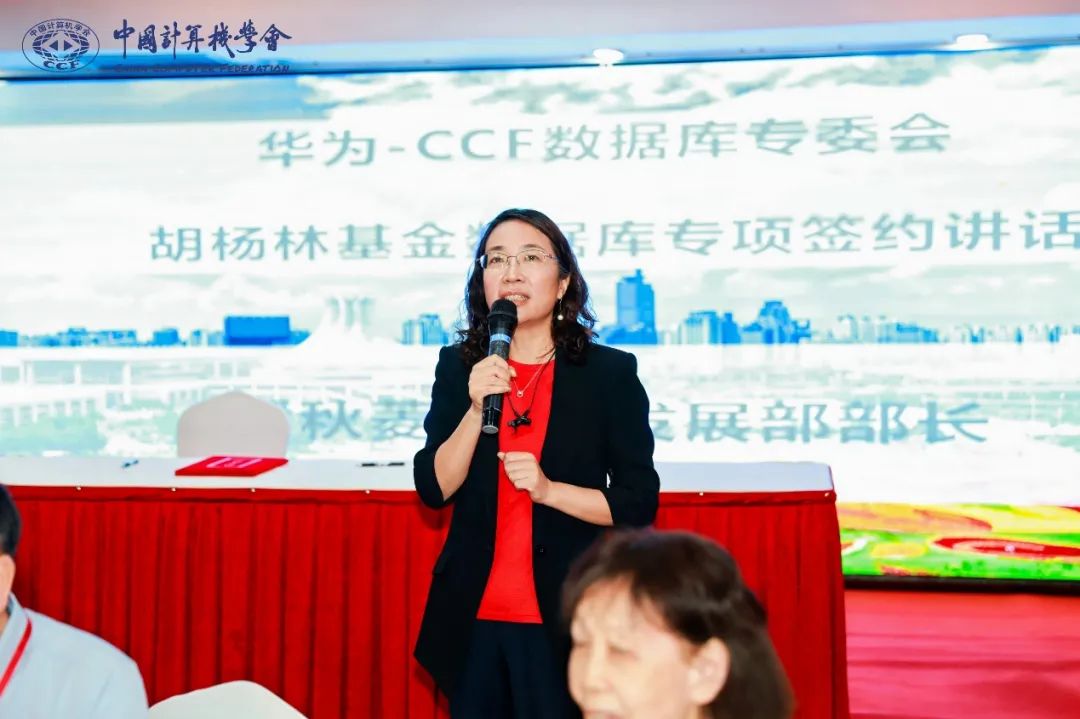 华为技术有限公司2012实验室高斯部李修昶部长与CCF数据库专委会周傲英主任代表双方共同签署了《华为-CCF 胡杨林基金数据库专项战略合作协议》。双方将面向未来五年进一步加强长期战略合作,吸引和支持更多的优秀学者投入数据库的学术研究之中,促进中国数据库产学研的深度融合与协同创新,推动国产数据库的研究创新和长远发展。