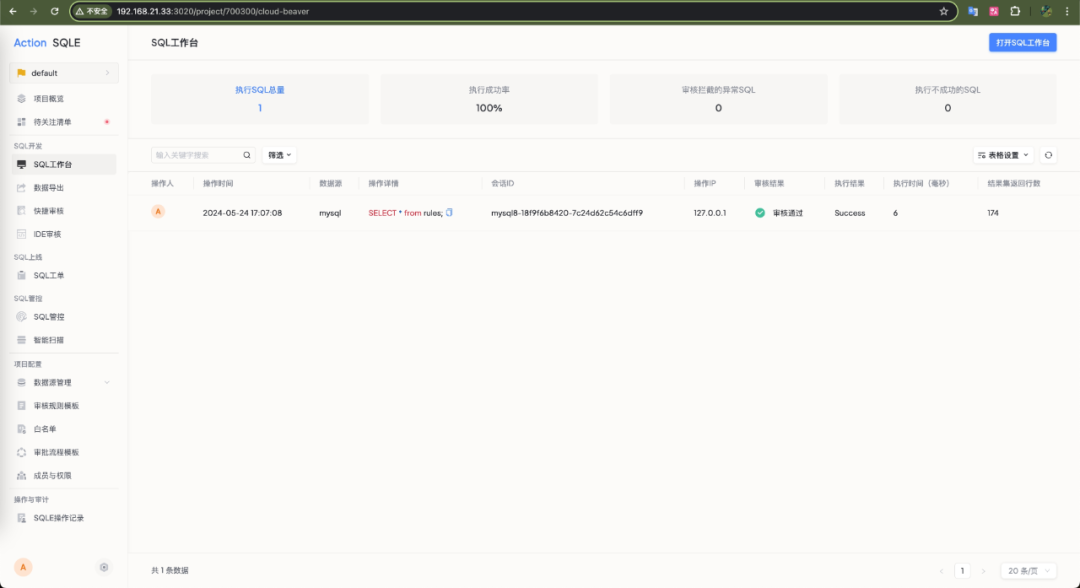 2. 管理员利用审计功能,可以详细查看成员的 SQL 操作行为,包括但不限于操作的具体内容和执行的具体时间,从而评估 SQL 的安全性和成员权限的合理性。
