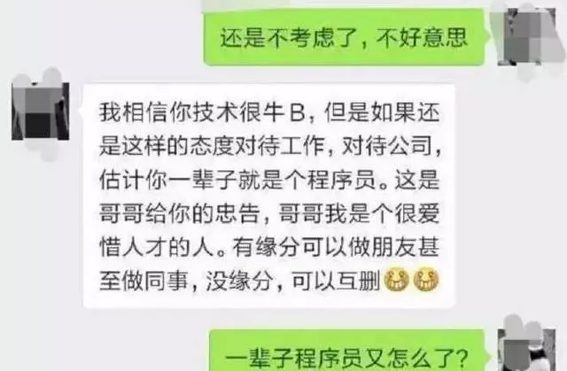 没想到奇葩的事情发生了,可能是因为影响了 HR 的业绩,这位 HR 直接怼这位程序员:“我看你这辈子也就只能是个程序员了。”