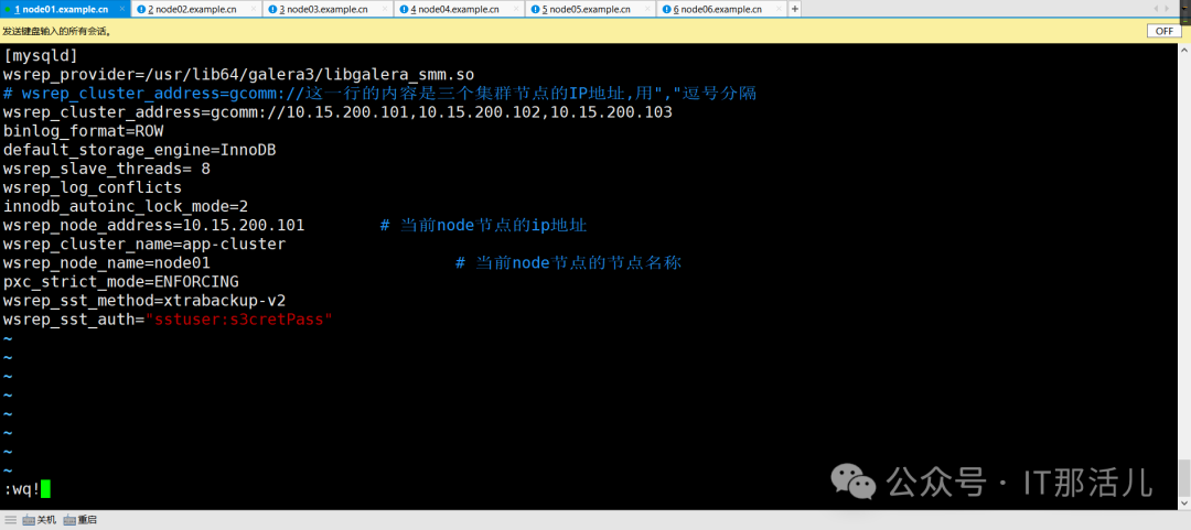 wsrep_node_name=node01 # 当前node节点的节点名称