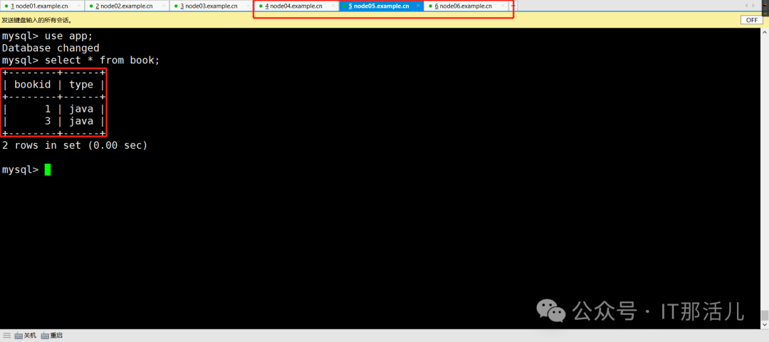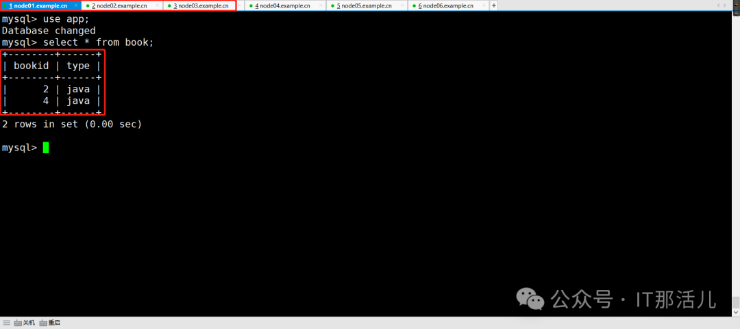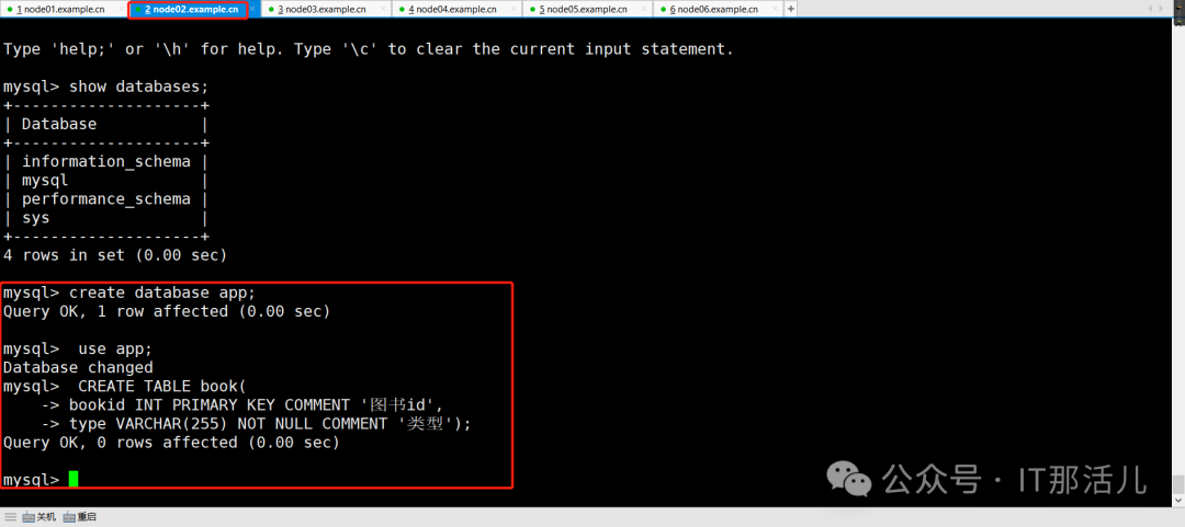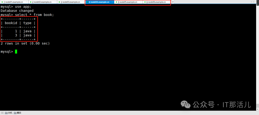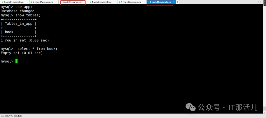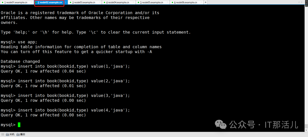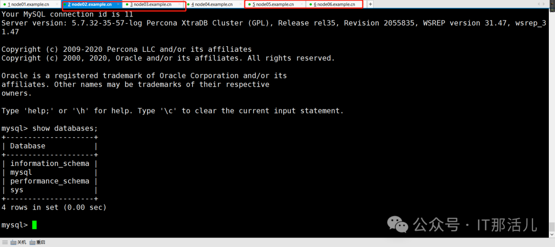 在node02 . node03和node05 . node06上分别启动数据库服务 (用修改好的密码)