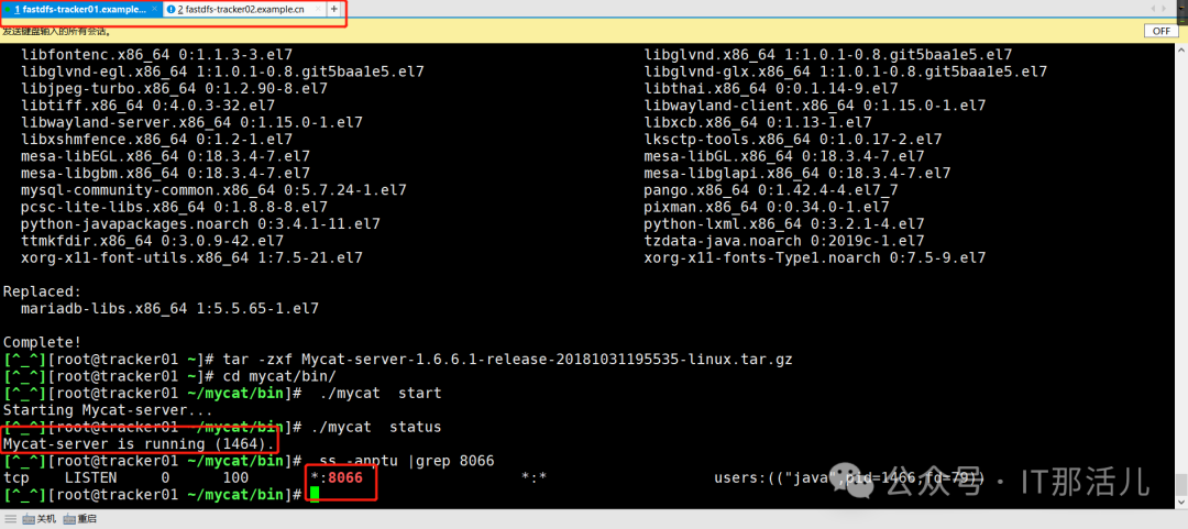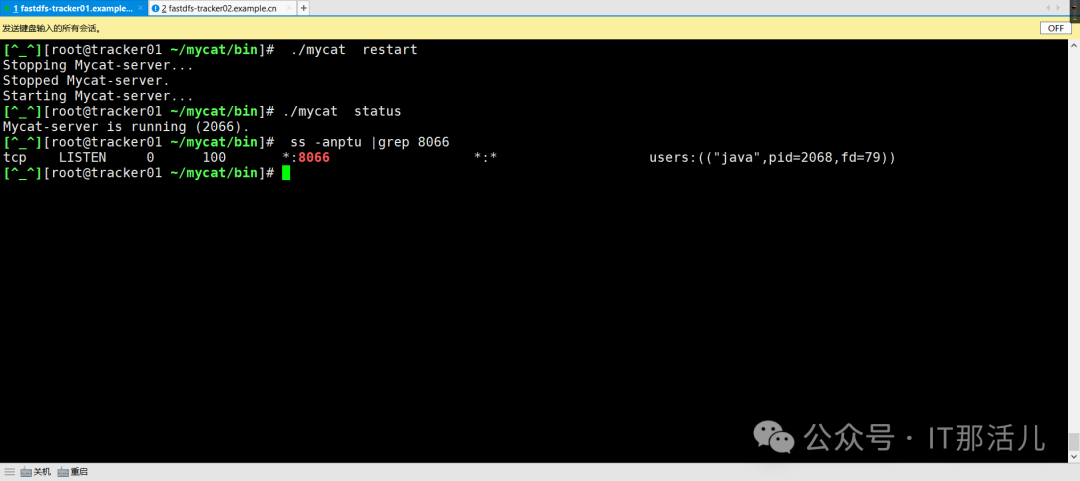 [root@tracker01 ~/mycat/bin]# ./mycat restart