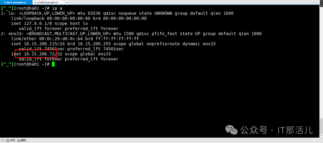 priority 116 #主节点的优先级(1-255之间),备节点的优先级比主节点的低 ha02可以为1-115之间的任意数