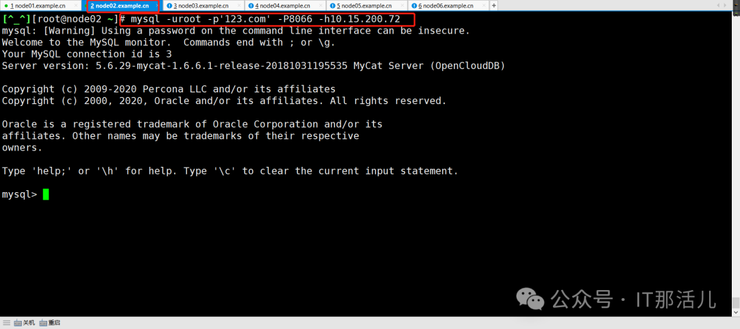 mysql -uroot -p'123456' -P8066 -h11.11.11.11