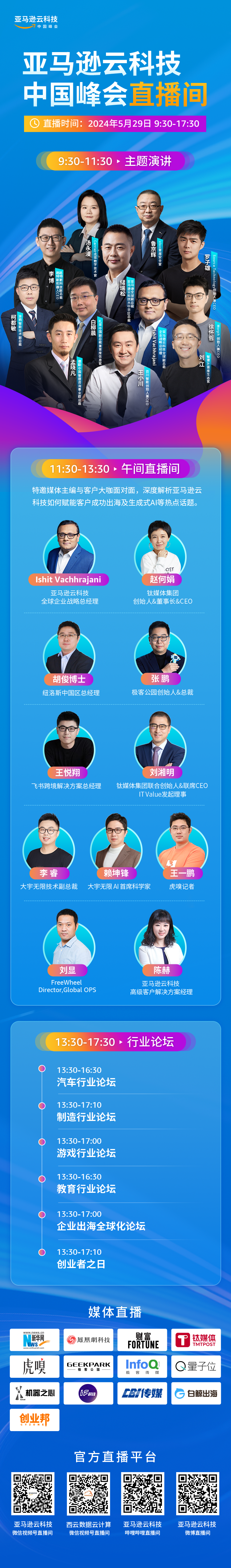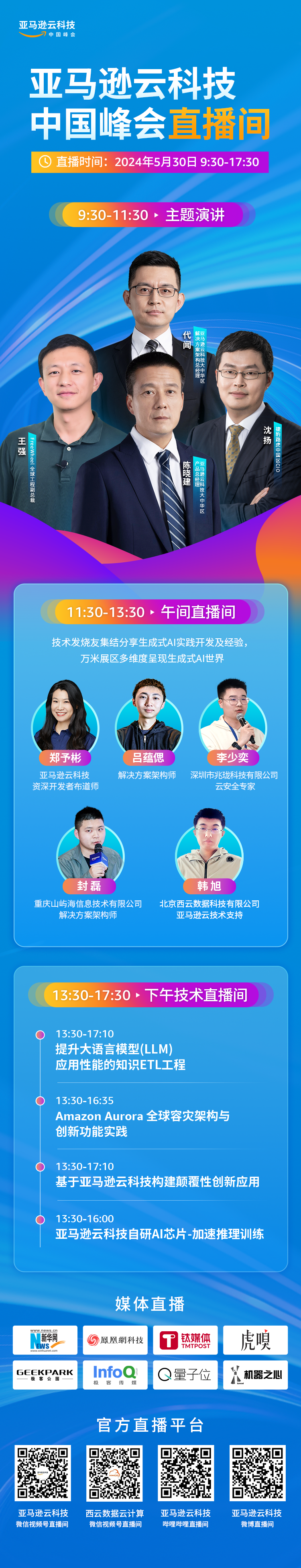 年度必看的科技盛会,2024亚马逊云科技中国峰会即将于5月29日在上海拉开帷幕!