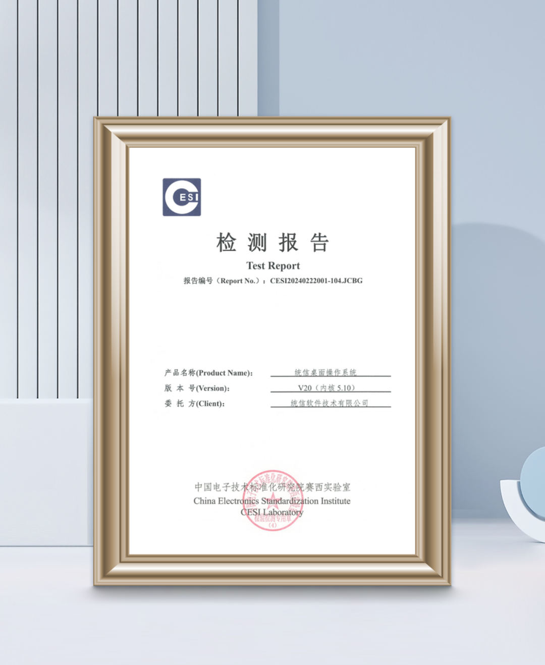 继统信UOS桌面版V20(4.19内核版本)通过中国电子技术标准化研究院检测后不久,统信UOS桌面版V20(5.10内核版本)也收到了检测报告!
