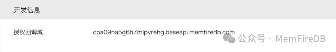 在微信开放平台,进入到第1步审核通过的“网站应用”中进行“授权回调域”的配置,配置的值为上一步中微信扫码认证服务商的重定向URL的 cpa09na5g6h7mlpvrehg.baseapi.memfiredb.com