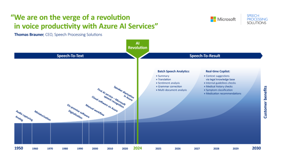 以下是 Speech Processing Solutions(飞利浦听写)使用 Azure AI 服务(包括语音分析)构建的一套示例技术: