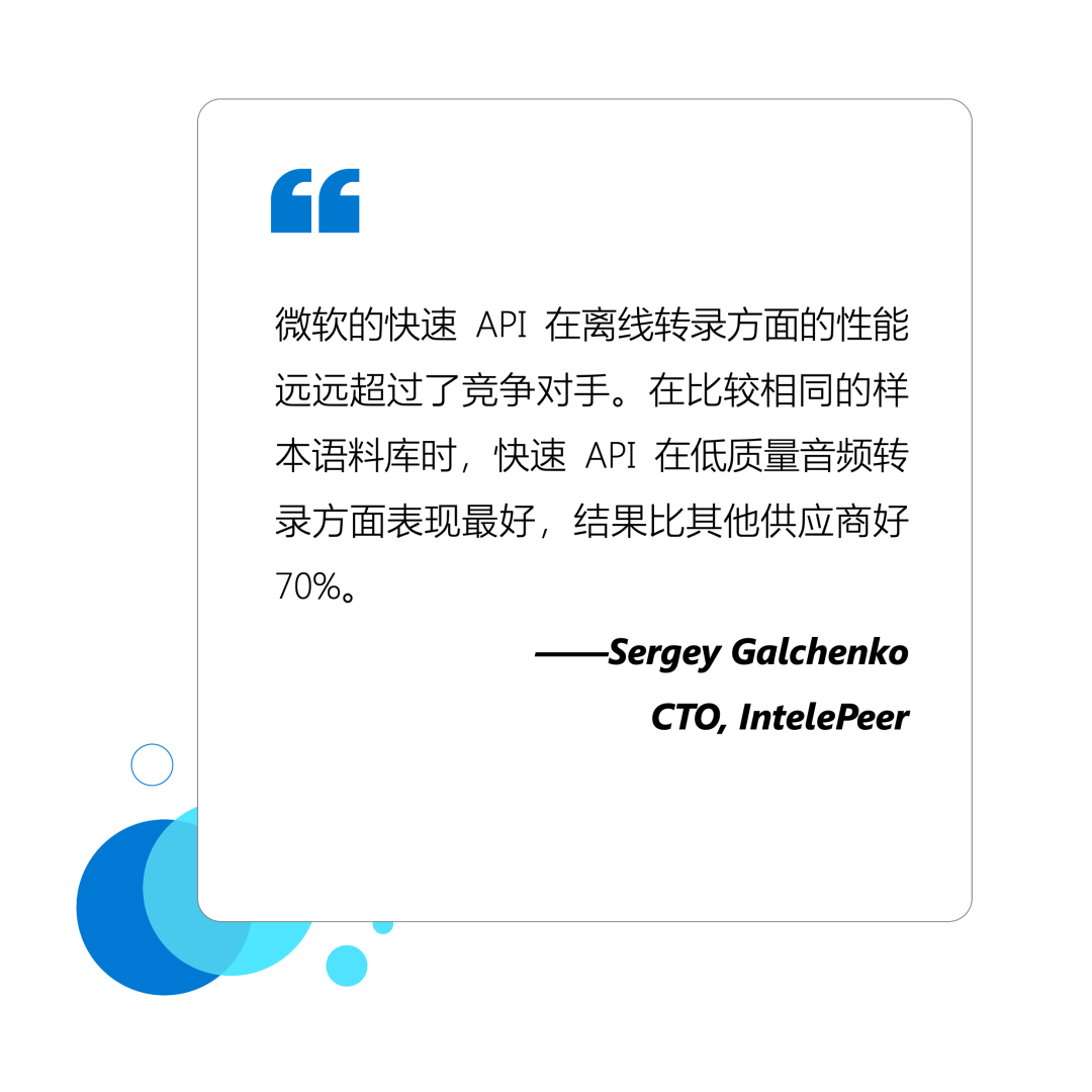 总之,我们强大而多功能的平台帮助客户将语音输入和输出与其他 AI 功能结合起来。这使得开发者能够为新场景创建高质量的工作负载。无论您是需要人类对话的见解、实时或录制的字幕,还是为您的虚拟形象、聊天机器人或 IVR 创建逼真和自然的语音,Azure AI 都能帮助客户提供快速、可靠和可定制的解决方案。
