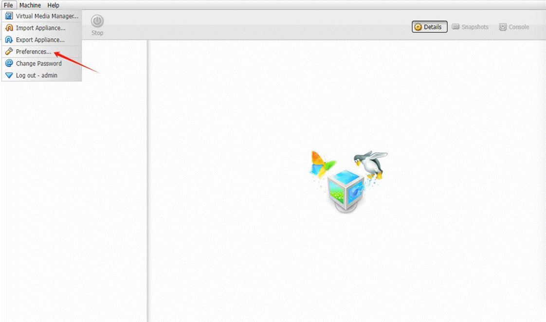 3.打开并登录VirtualBox,默认用户名admin,初始密码admin;