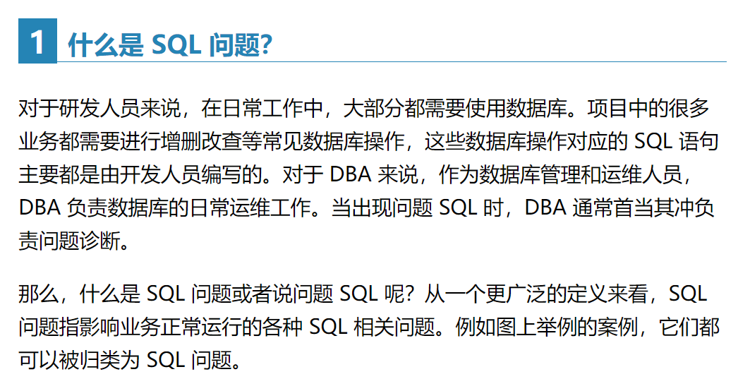 SQL 操作数据库对应软件研发人员是一类基础且常见的工作内容,无论是日常的数据库应用开发,还是配合数据库产品迁移的应用改造,数据库设计和SQL的质量都是值得关注的问题。