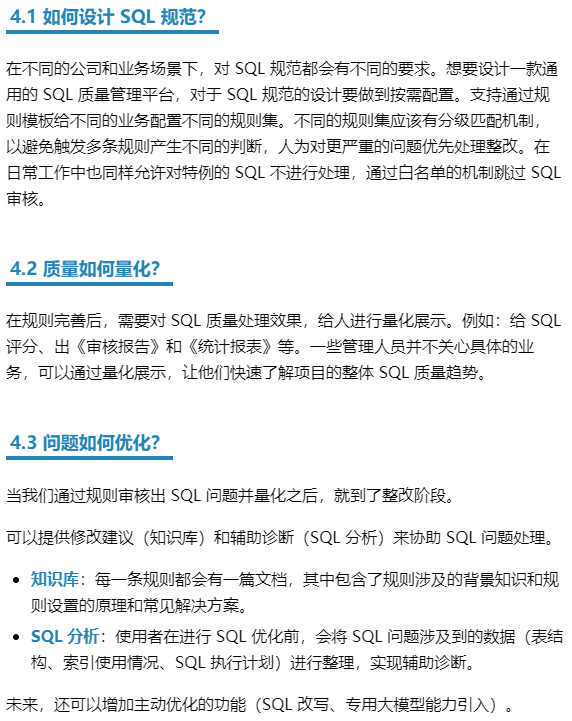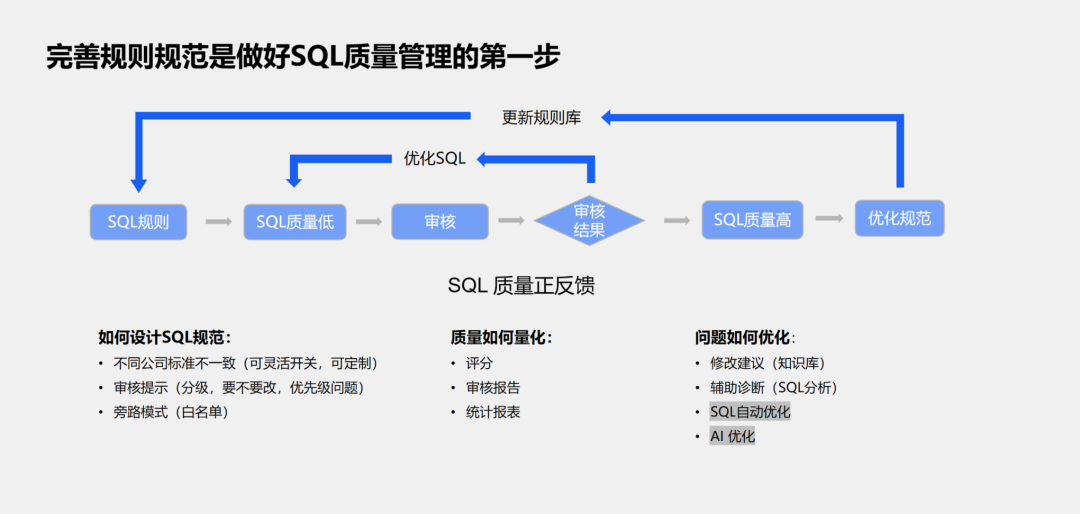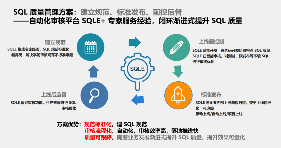 目前业界有很多提供SQL质量管理的产品,甲方也会有很多自研实现相关功能的,但无论何种形式,能解决问题,才是王道。