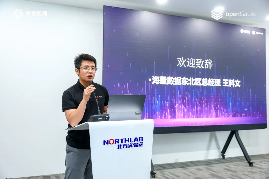 首先,海量数据东北区总经理王科文对本次活动作欢迎致辞,对大家参加本次活动表示欢迎和感谢!他表示本次活动希望向各位展示openGauss的强大实力和广阔前景,同时与大家共同探讨海量数据库领域的发展趋势和创新方向。此外,他还回顾了去年8月在黑龙江的openGauss Meetup活动,经过9个月的发展,在东北的金融、企业、医疗和教育方面都有了进一步突破,这是我们和用户、伙伴在技术和服务方面不断交流互动积累出的结果。他相信海量数据与openGauss团队能够共同推进开源内核的技术攻关和创新,传递开源和商业的力量,最终实现生态繁荣,合作共赢。