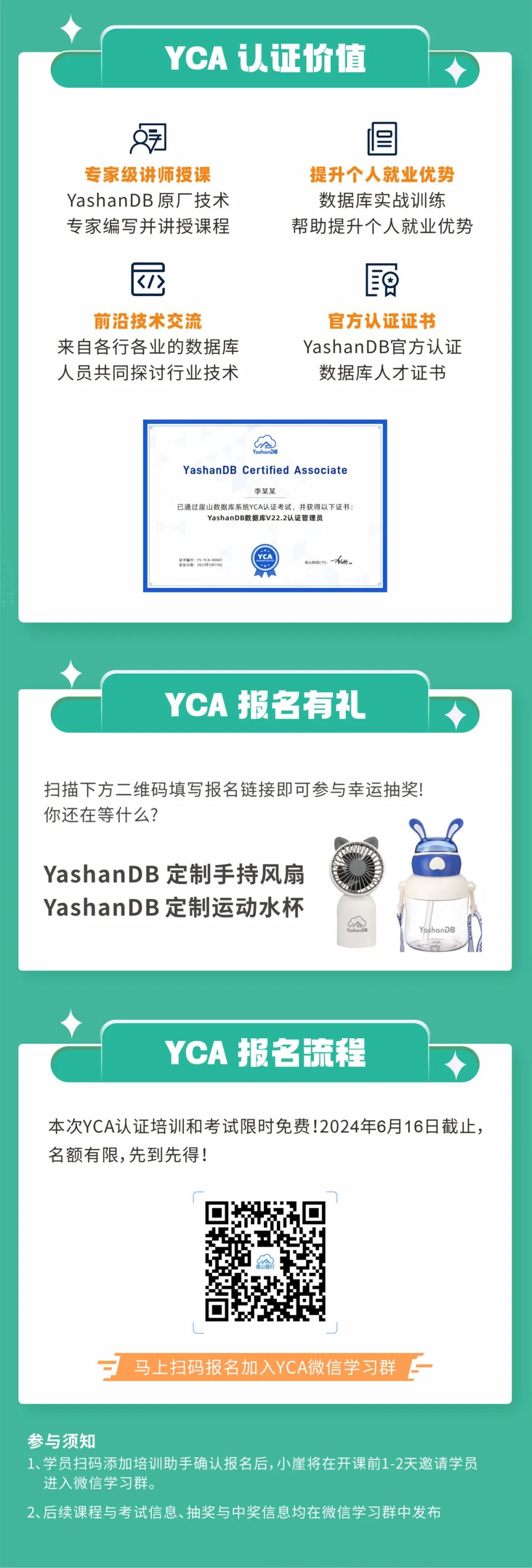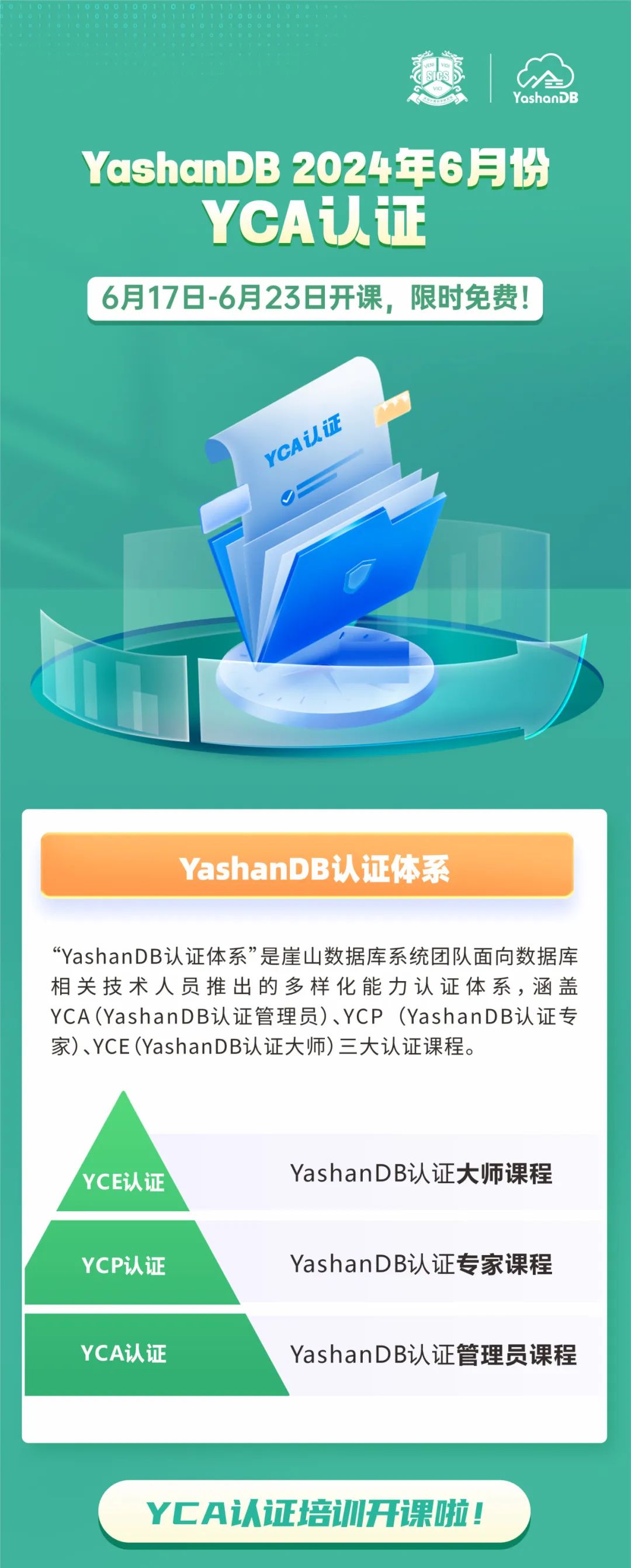 培训预告 | YashanDB 6月YCA认证,火热招生中!