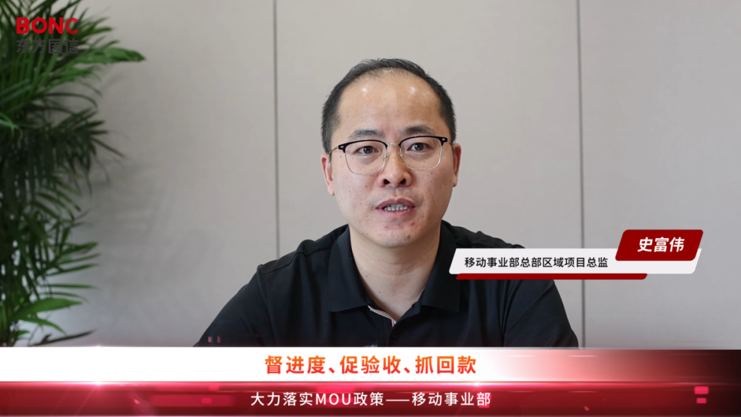 为有效促进项目验收与回款,东方国信移动事业部总部区域项目总监史富伟从三个方面阐述了主要举措。