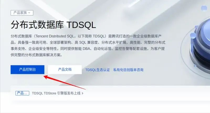 第一步,在 TDSQL 的官网[2]上,进入产品控制台。