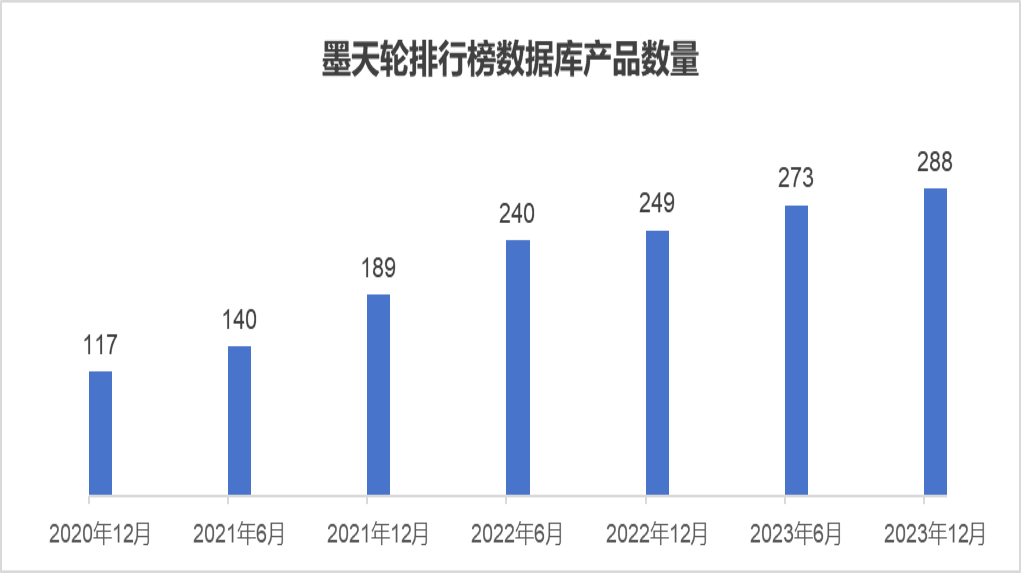 - 2023年中国数据库产品分析。截至2023年底,墨天轮中国数据库流行度排行榜收录了288个数据库产品,相较2022年新增数据库产品的数量减少,这反映出中国数据库市场在生产方向上正经历着由快速扩张向质量提升转变。报告中除了对2023年中国数据库产品流行度进行了分析,还依托墨天轮产品功能对数据库模型、起源、处理类型、商业模式、总部分布等进行梳理,望进一步展示当前国内产品发展现状。