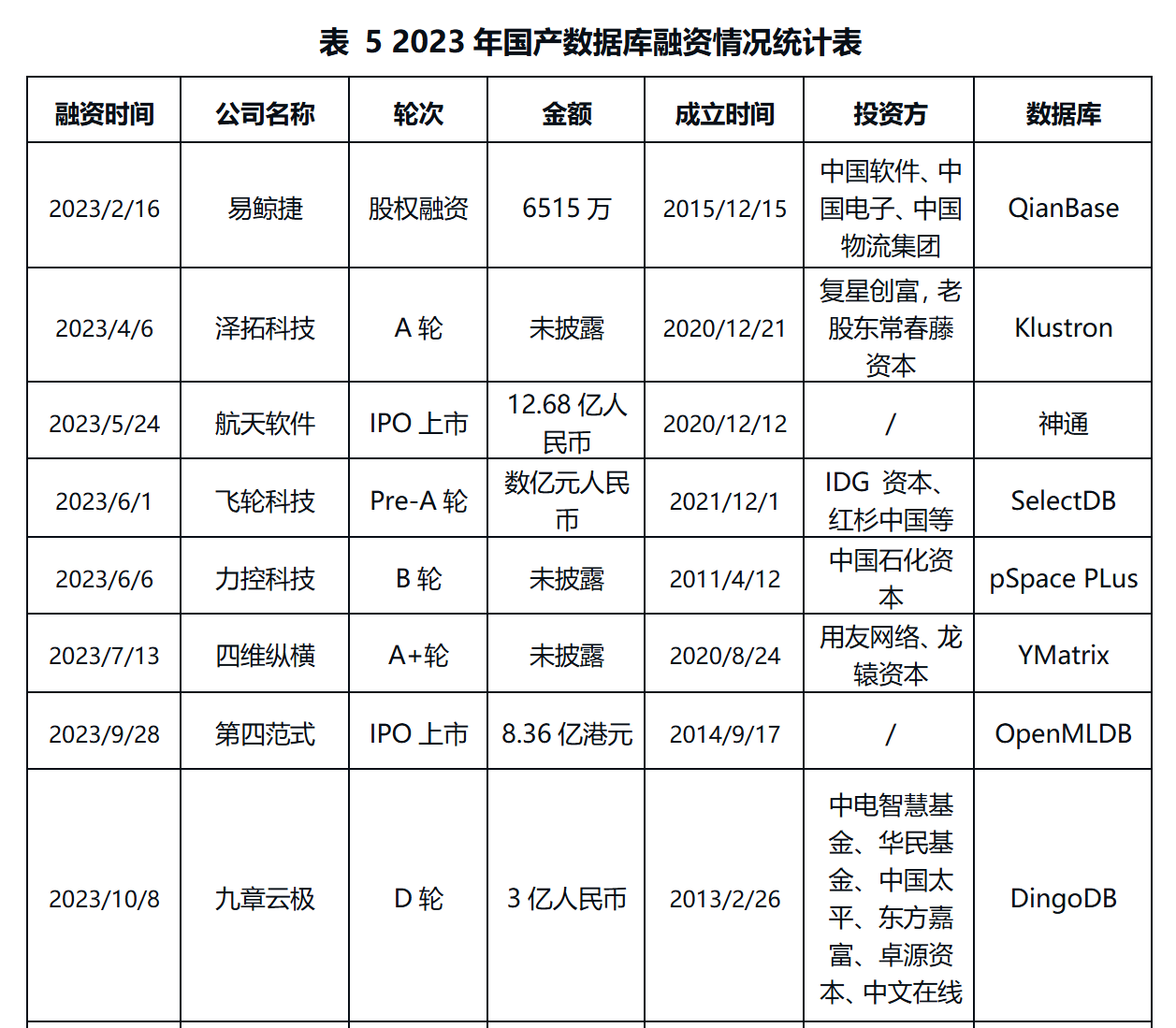 2023年国产数据库厂商融资情况统计表(因篇幅所限此处为部分内容截图)