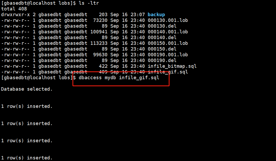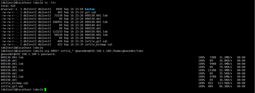 5、把导入文件和导入脚本传到gbase8s服务器上的/home/gbasedbt/lobs 目录上;