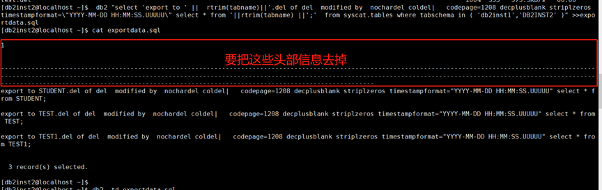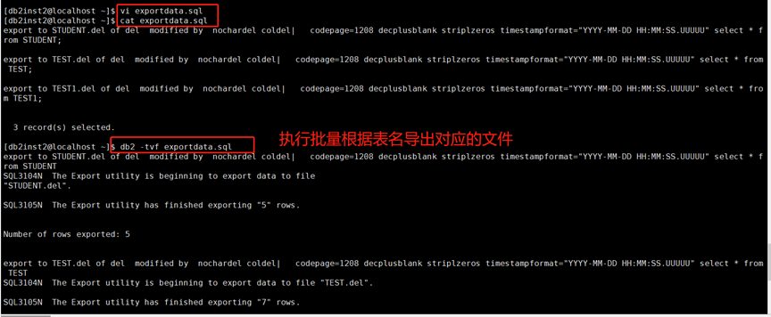 4. 执行批量导出:db2 -tvf exportdata.sql
