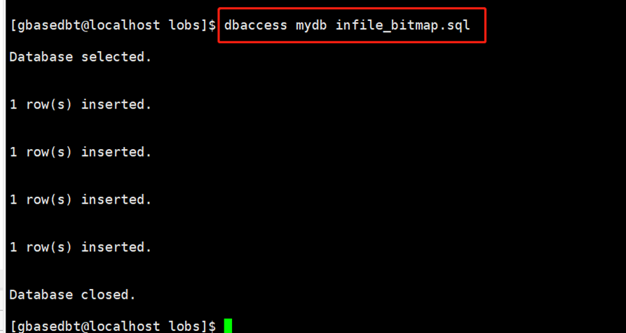 6、开始执行批量导入:dbaccess mydb infile_gif.sql , dbaccess mydb infile_bitmap.sql