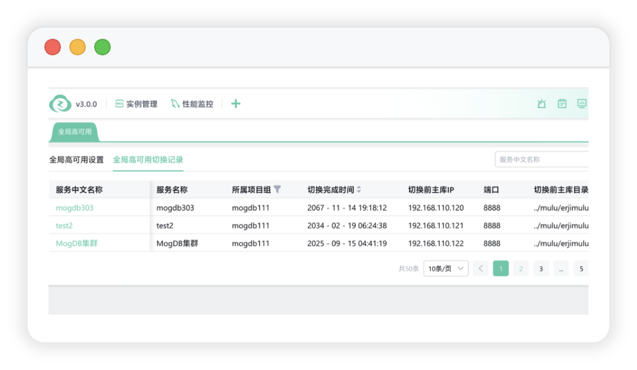历史切换追溯 主从切换记录的保存,为事后的故障复盘和审计提供了宝贵的数据支持,有助于持续优化运维流程和高可用策略。 单个集群切换记录: