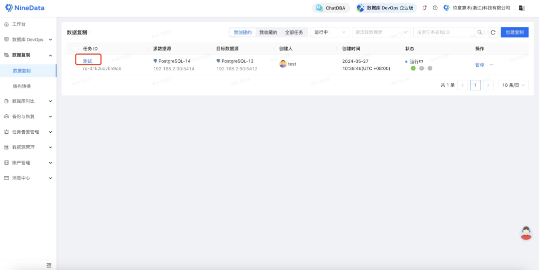 ,然后单击步骤二中创建的复制任务 ID。