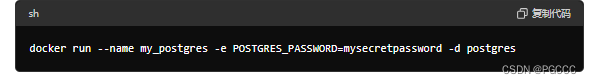 -e POSTGRES_PASSWORD=mysecretpassword:设置 PostgreSQL 的 postgres 用户的密码。