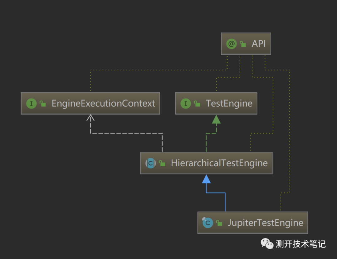 说到testEngine的execute方法,我们先看看JupiterTestEngine的继承结构,如下图所示: