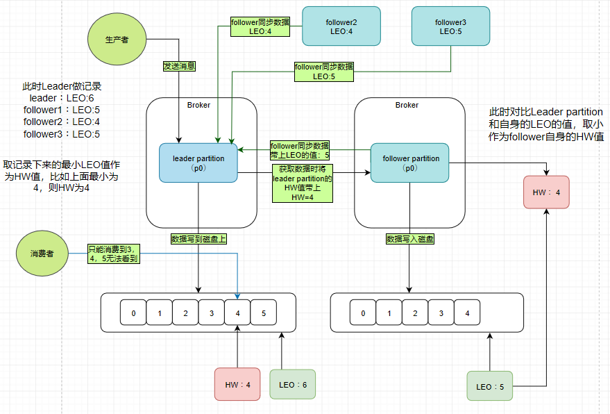 3.HW&LEO(LEO(last end offset)日志末端偏移量;HW(highwatermark),高水印值)