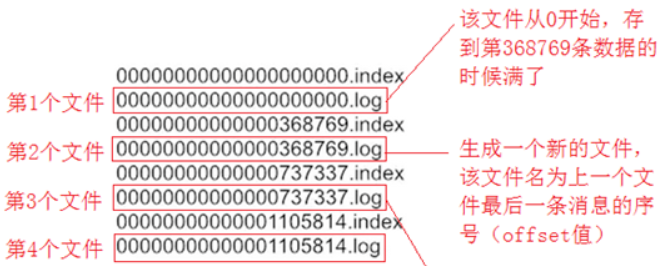 日志段,一个日志又被划分为多个日志段,一个日志段对应一个具体的日志文件和两个索引文件(日志文件以“.log”为后缀,两个索引文件分别以“.index”和“.timeindex”),表示消息偏移量索引文件和消息时间戳索引文件