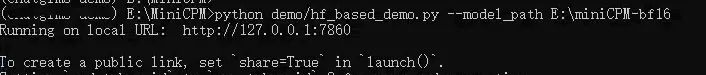 其中 <hf_repo_path>是模型下载到本地的文件路径,如:E:\miniCPM-bf16