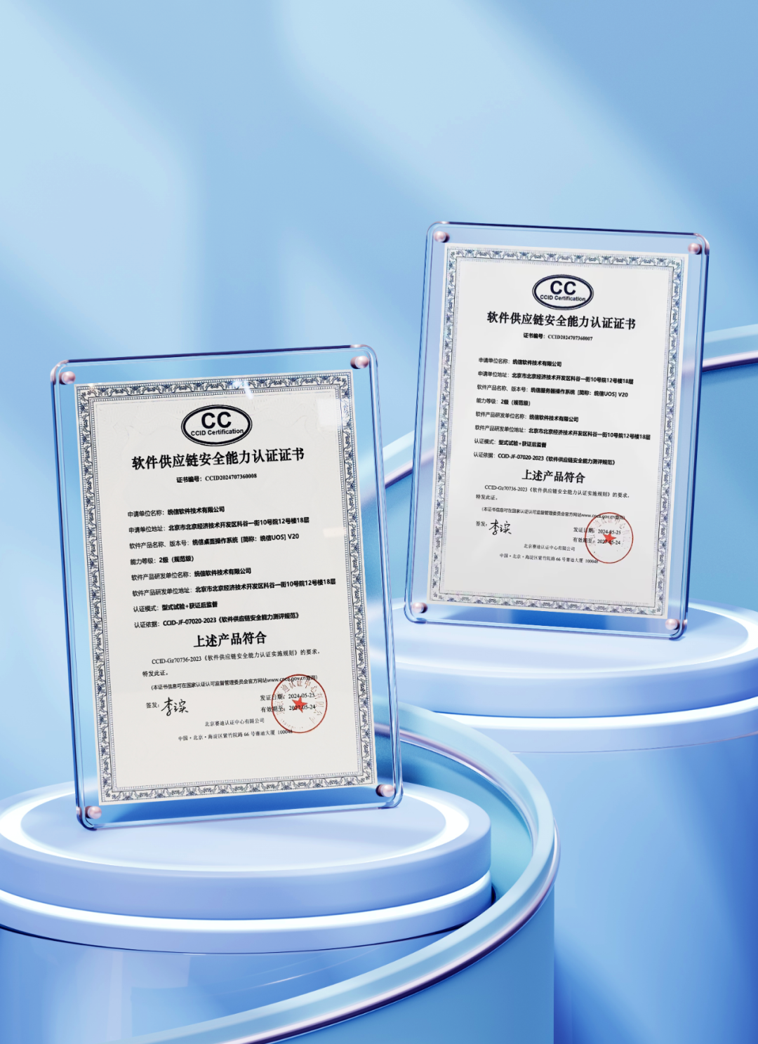 统信UOS凭借自身强大的全栈系统安全防护体系首批通过该项认证,从供应链角度再次证明了其卓越的产品安全能力。