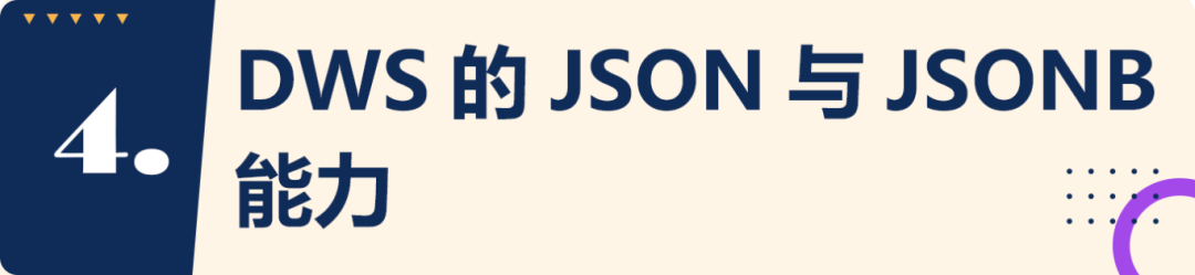 参考DWS产品文档,JSON数据类型可以用来存储JSON(JavaScript Object Notation)数据。