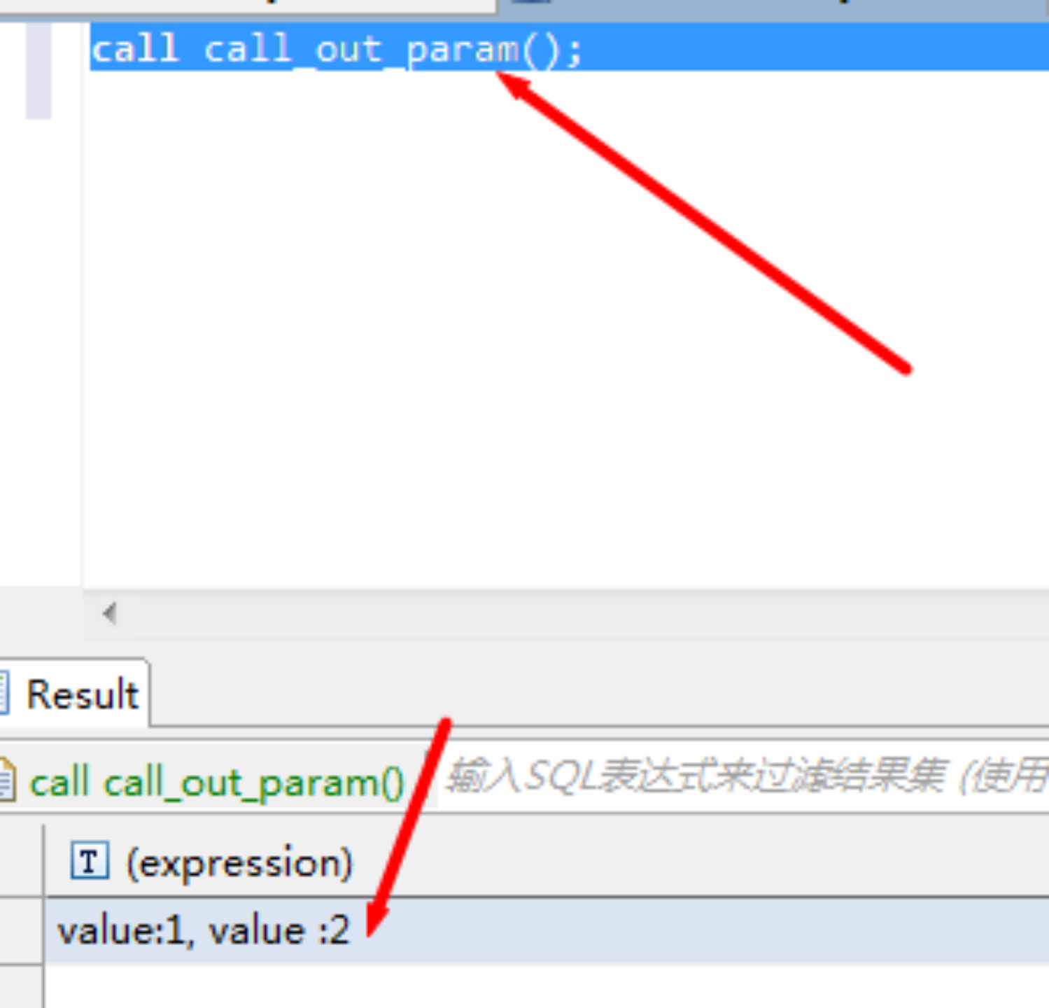 能看出来,这是两个返回结果值。存储过程执行结果,也是两个返回值。