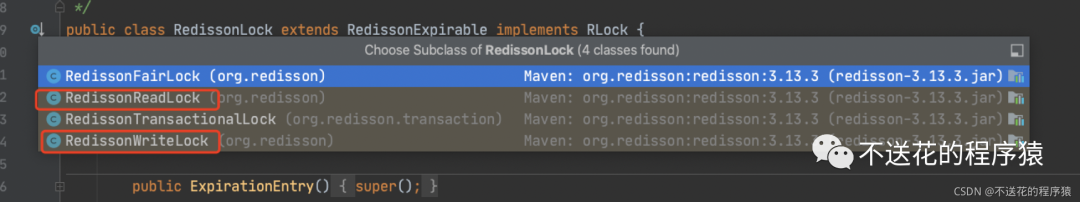 从上面文章我们也知道,Redisson 提供的公平锁是基于 RedissonLock 做的扩展;但其实不但是公平锁,Redisson 提供的读写锁也是基于 RedissonLcok 上做的扩展: