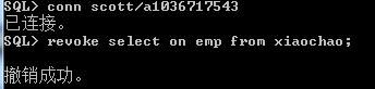 使用scott登录收回6.1赋予给xiaochao的select emp表的权限