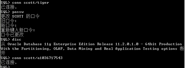2.2、alter user 存在的用户名 identified by 新密码 作用:修改其他用户的密码,注:当前用户必须具有sysdba的权限,或者是当前用户具有alter user的系统权限