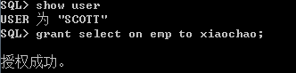 ok,使用xiaochao用户成功的查到了scott用户的emp表,但是注意:表前需要加方案(用户)名