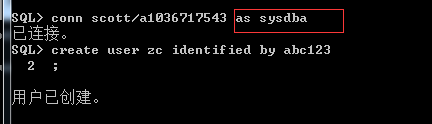 1.3、conn 用户名/密码 as sysdba 作用:当前用户使用sysdba的身份进行登录,所有当前用户就具有了所有的dba的权限,注:即使是新创建的用户如果使用此口令,也可以以dba的身份登录