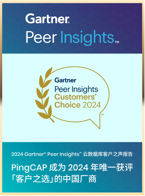 近日,全球信息技术研究与咨询机构 Gartner 发布了云数据库市场领域 2024 Gartner® Peer Insights™ “Voice of the Customer” 报告,企业级开源分布式数据库厂商 PingCAP 获评「客户之选」,是唯一获得该称号的中国厂商。PingCAP 连续三年入选该报告,在截至 24 年 5 月的总计 68 条评价中获得 4.9 星的总评,特别是在支持体验方面获得了最高的 4.9 分(满分 5 分),在所有入选企业中位列第一。