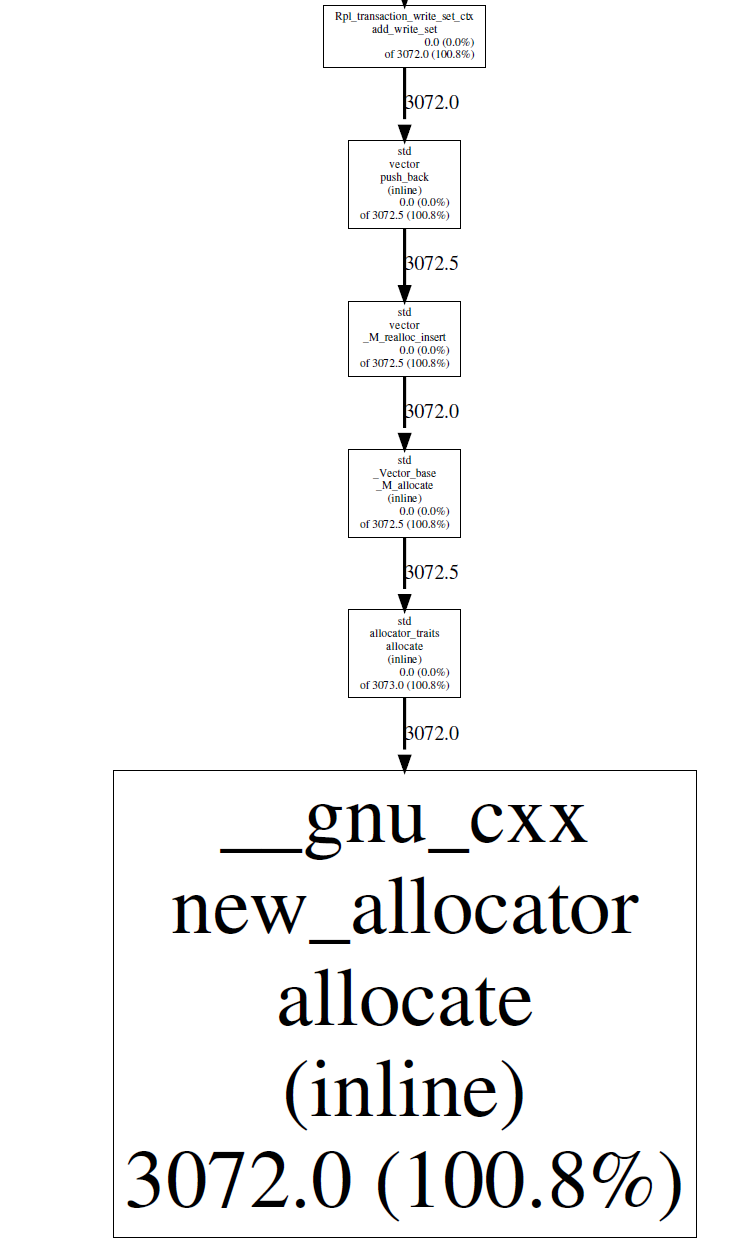 而write_set恰是一个vector, 因此可以确定write_set占用了3072M内存从而导致内存的异常增长。这其实也是vector错误使用的一个典型案例,对于这种大量的push_back场景,由于vector的2倍扩容,不仅会导致内存占用过多,扩容的过程中反复的申请新内存、释放旧内存也会导致性能问题。若仅考虑当前的问题场景,显然list是更优的选择。1. 编译jemalloc时,注意./autogen.sh --enable-prof 以及./configure --enable-prof 都需要加上--enable-prof选项,若仅在./autogen.sh是加上--enable-prof参数,这种情况下你需要在启动的时候以如下方式启动mysqld, 否则无法生成profiling文件:LD_PRELOAD='/jemalloc/libjemalloc.so.2' bin/mysqld &