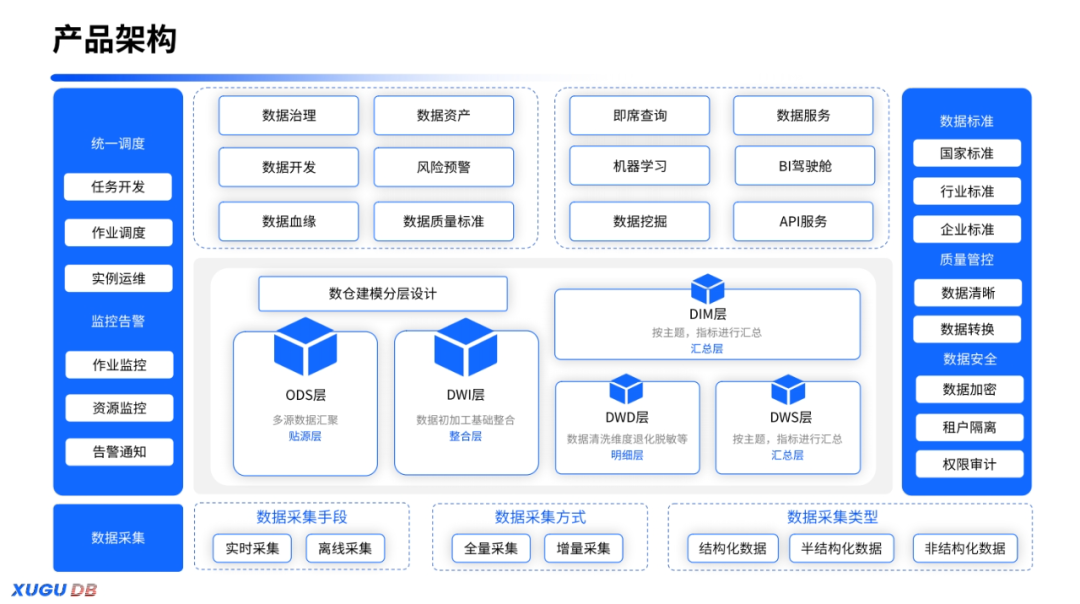 提供丰富的元数据采集适配器,多样的数据收集通道,灵活可定制的数据标准模板功能。通过闭环的数据质量管理功能和图形化的数据建模方式,将元数据,数据标准,数据质量,数据安全,数据模型有机整合,构建数据治理平台。