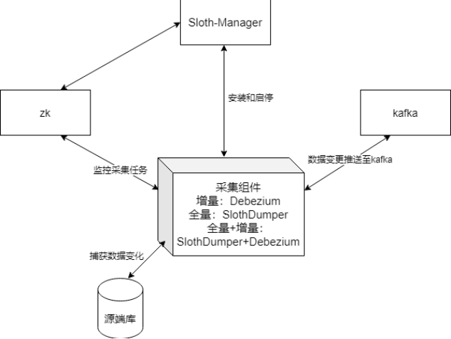 采集组件:全量数据采集,增量解析相关日志得到增量数据信息。