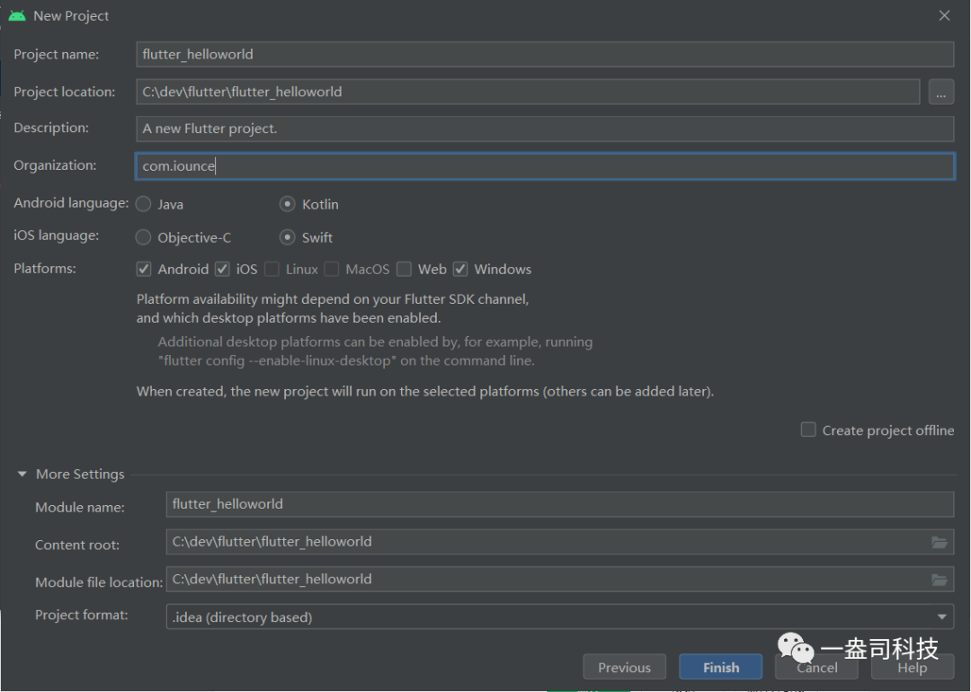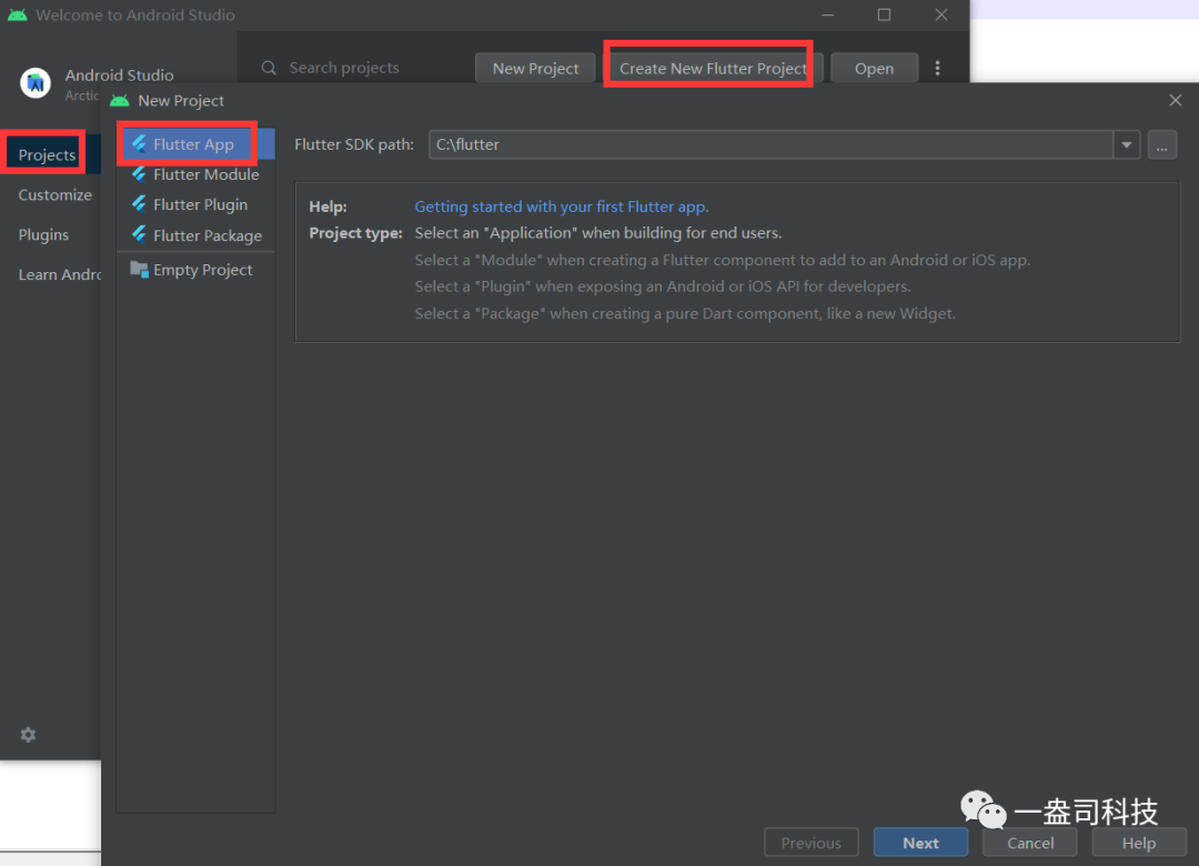 2.创建Flutter工程:点击Project,在弹出的对话框中选择Create New Flutter Project,然后根据提示创建工程即可。