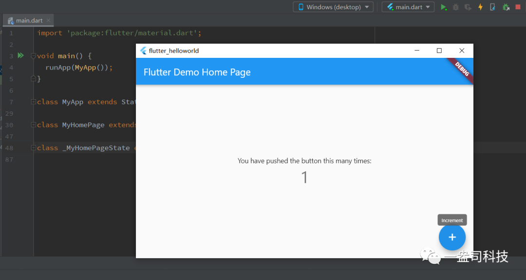 ▶选择运行的设备,可选择Web版、桌面版或者模拟器,还可以真机联调,与Android类似。此处选择桌面版,点击运行: