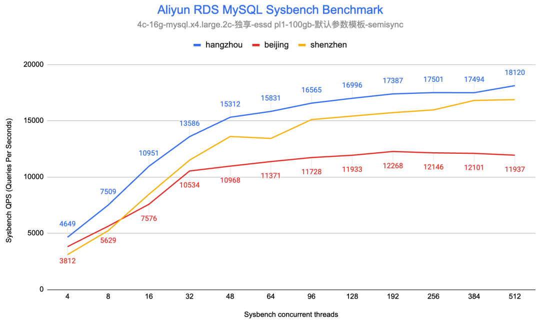 相比于第一次测试,这次AWS表现出了非常好的性能(第二名);这是比较意外的,不过再回头看上次测试中,AWS也表现出了很好的扩展性,可能当时最大128线程并发,并没有压测当时的极限性能。也可以看到,Amazon RDS在高并发的时候,表现是非常好的。